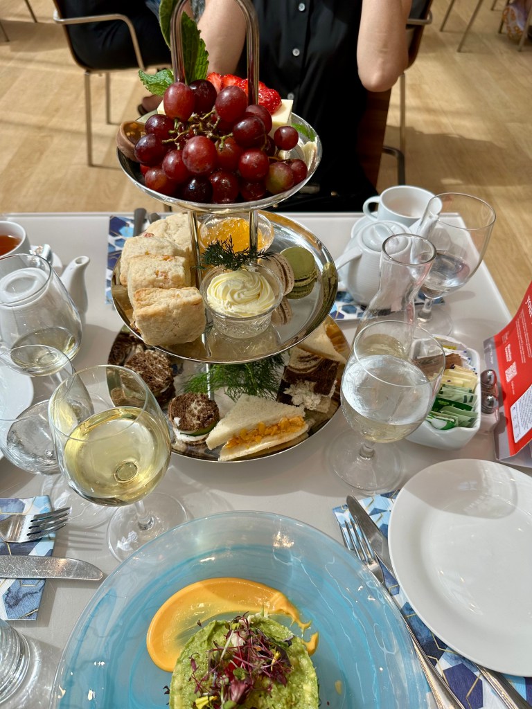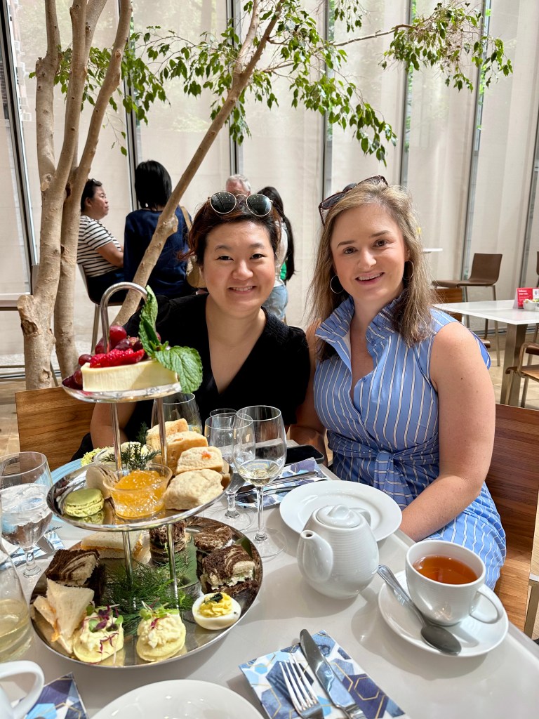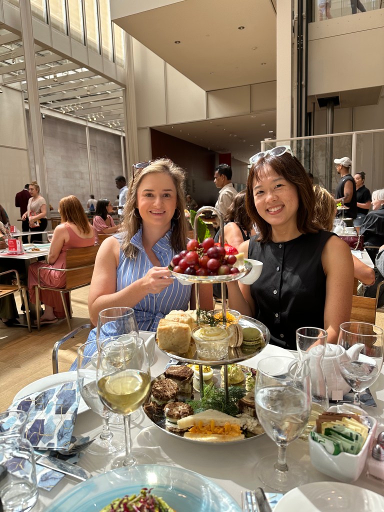 Then we went to the Morgan Library & Museum. We had lunch at the café, which is inside the museum. If you have not been there yet I recommend making it a priority. Back in 2023 when I first visited the museum, I treated myself to some truffle-parmesan fries and crostini bites. And this time, we indulged ourselves with afternoon tea, white wine, crab salad, and a burrata with grilled peaches, topped with Thai basil. After lunch, we checked out the Jane Austen exhibit.