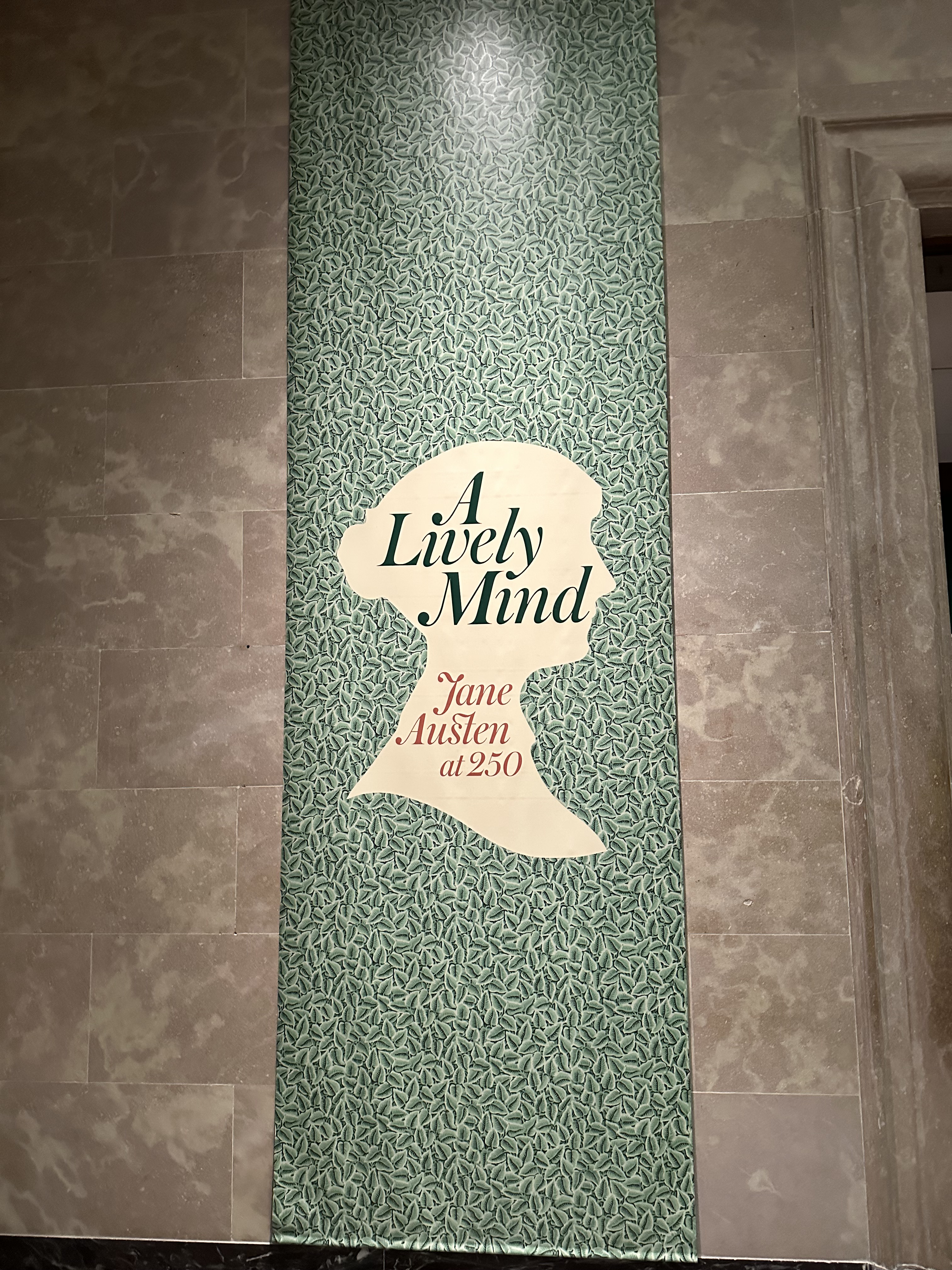 Then we went to the Morgan Library & Museum. We had lunch at the café, which is inside the museum. If you have not been there yet I recommend making it a priority. Back in 2023 when I first visited the museum, I treated myself to some truffle-parmesan fries and crostini bites. And this time, we indulged ourselves with afternoon tea, white wine, crab salad, and a burrata with grilled peaches, topped with Thai basil. After lunch, we checked out the Jane Austen exhibit.